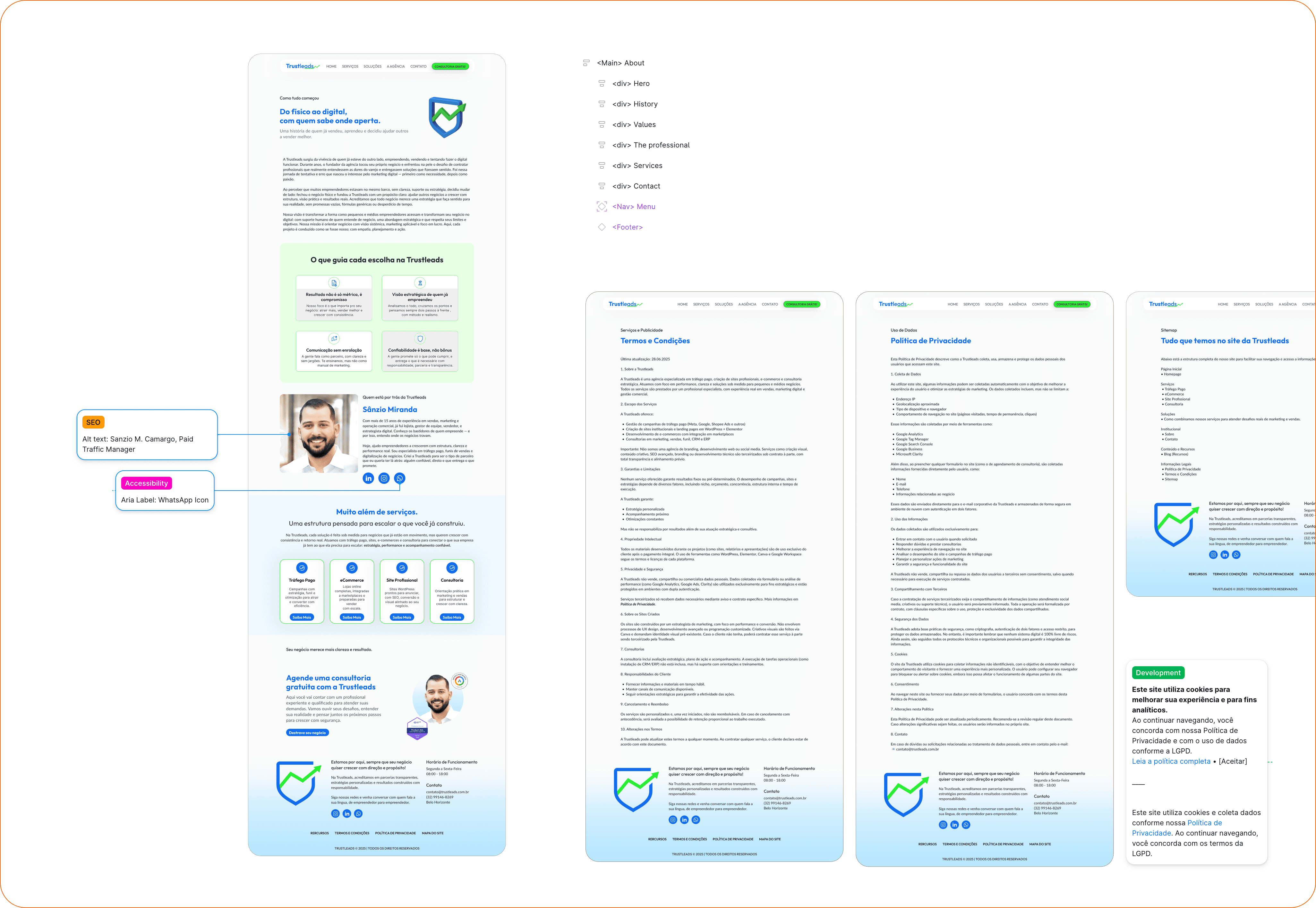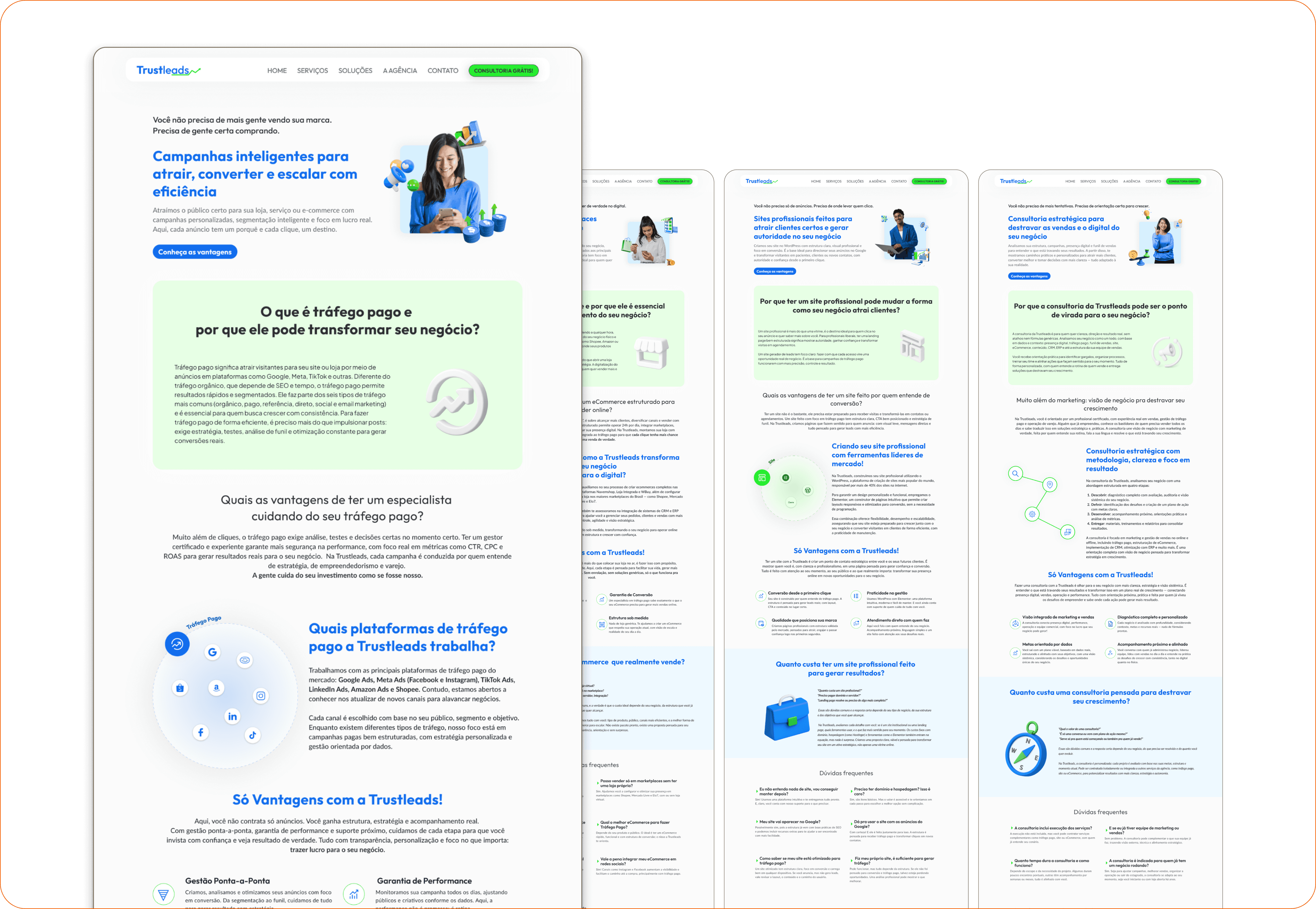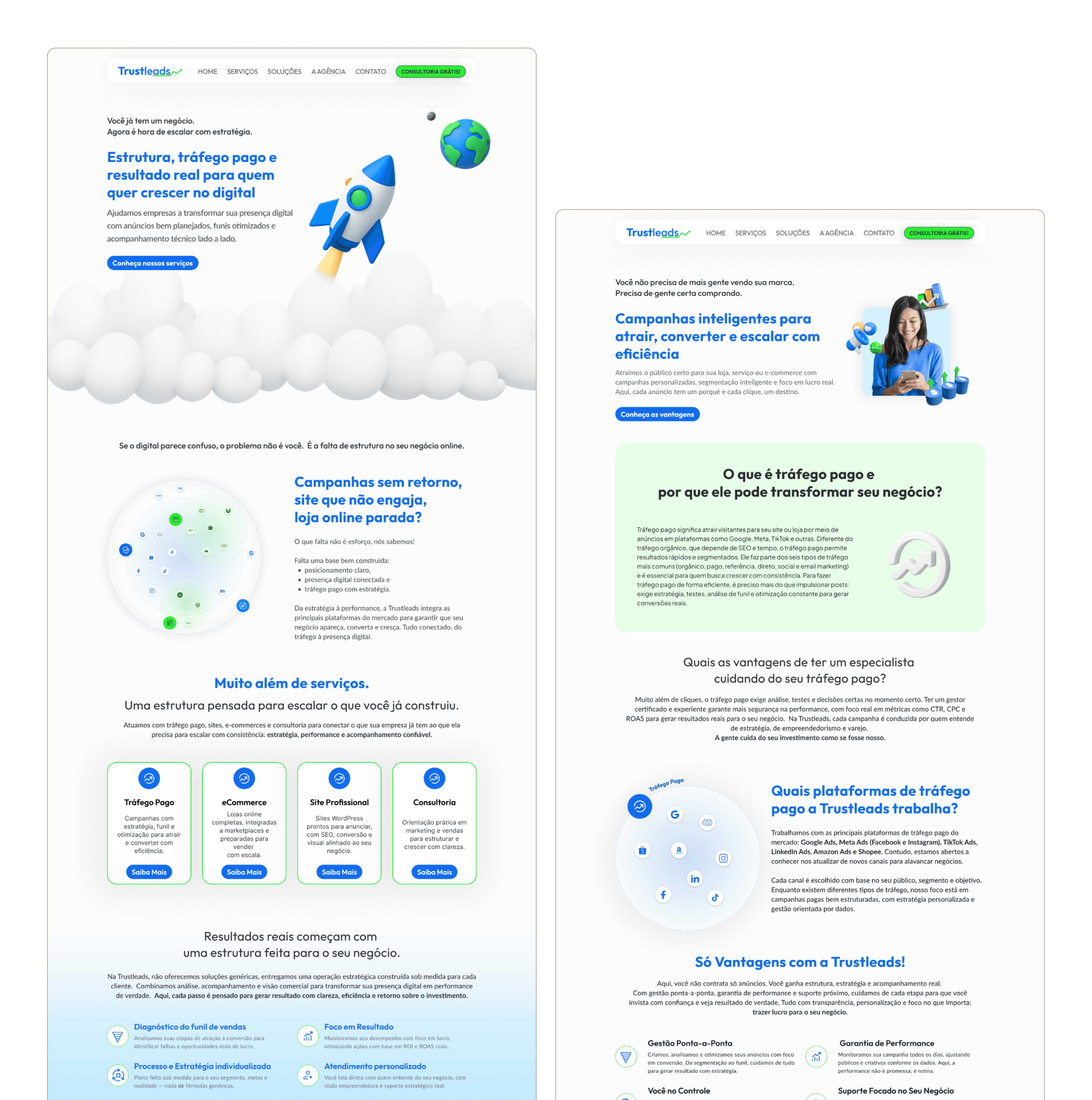 First, I needed to understand the business itself — what the agency was offering and the best strategy to make it clear for users while improving the pricing approach. I restructured the offer into 3 categories: Paid Traffic Management, Professional Website Creation, and Marketing Consulting.